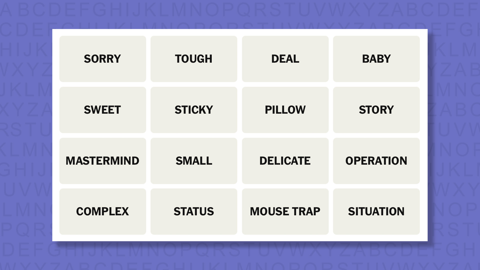 Every puzzle consists of 16 words, and each cluster of words is categorized into four groups. These categories can encompass anything from book titles, software names, country titles, etc. Although several words may appear to connect, there is only one correct grouping.