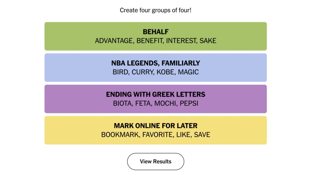 Each puzzle consists of 16 words, organized into four distinct categories. These groups could incorporate anything from literary works, software applications, country names, and so on. Although many words may appear to fit together, there is only one right combination.