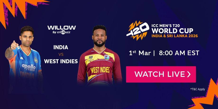 Watch India vs. West Indies in the 2026 T20 Cricket World Cup for free on ICC.TV.
